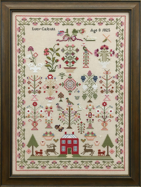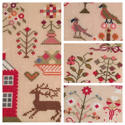 What?? January has come around again! You see, the lunar new year is not the same as a calendar year... this one in particular continues through to February 16th! So that gave me the opportunity to stitch a few more samplers! This sampler, Harriet Holtby from the Scarlett House, was a recent release and when I saw all of the colors and flowers and birds it was another must stitch! Such a stunning rose border! Harriet truly created a Garden of Eden!