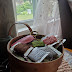 Stitched on 40 count Golden Pear Wabi-Sabi linen with called for overdyed cotton.