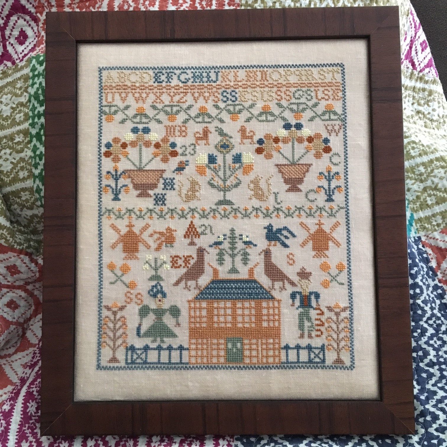 CML1810 from Aimee Mrs. Flossy! This is definitely a different type of color palette for an A&E! Lots of bold primary colors. The sampler really gives off a Dutch feel with the motifs and alphabet.