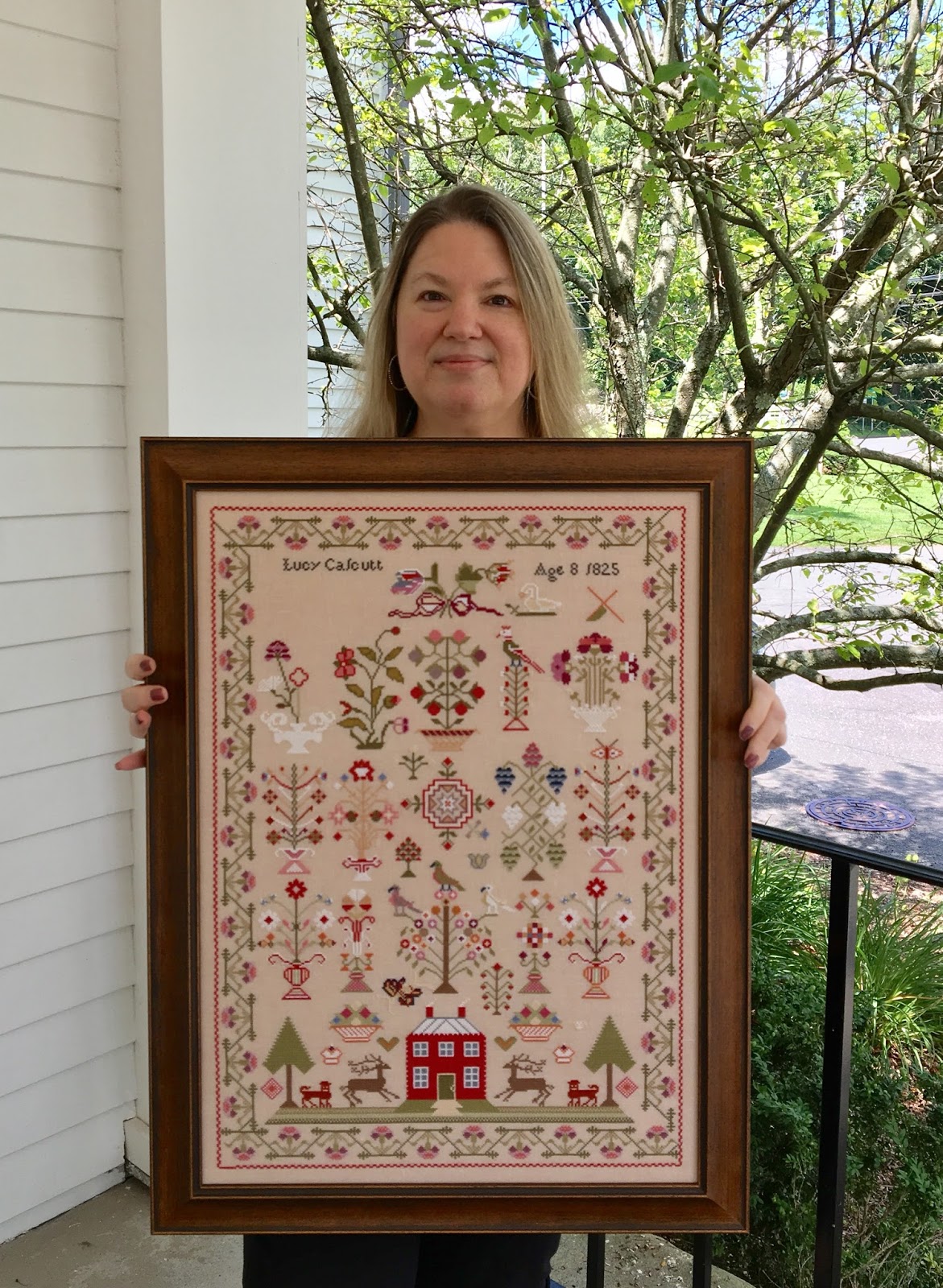 Hannah Hammonds! This one from GigiR Designs caught my eye many moons ago. It was time to bring it to the forefront and get it started! With the photo of the original antique on the pattern it was tricky to know what would develop. It really blossomed with amazing colors from pink to burgundy and it has a wonderful verse: